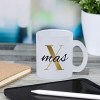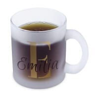 Die Glastasse mit Buchstaben & dem eigenen Namen erscheint in einem modernen Design.